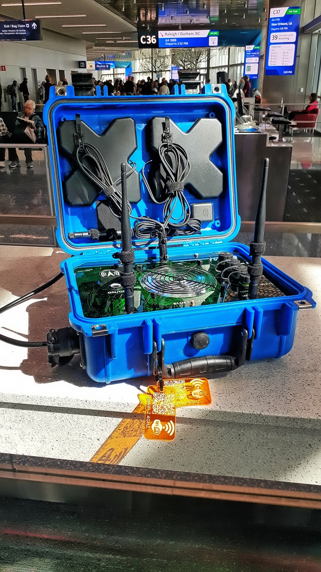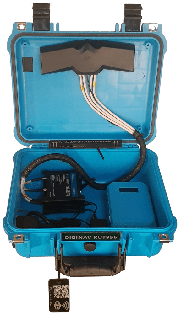 These radios are designed for vehicle mounting but come in rugged cases for easy transport, allowing for use beyond vehicle limitations. All case models are ready to go with no setup required. The network name and password are customized upon customer request. Just plug it in, turn it on, and scan the QR codes to connect—no IT expertise needed.